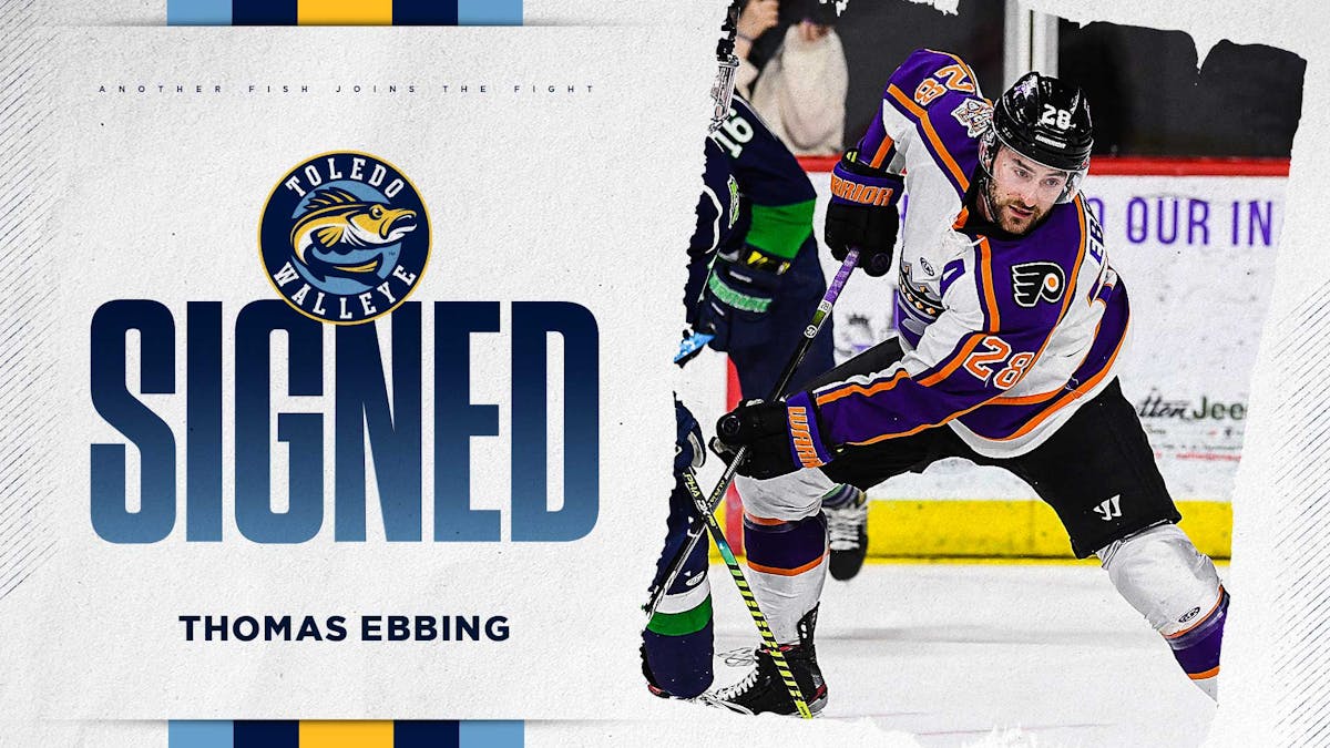 (Toledo, OH) – Forward Thomas Ebbing has agreed to terms with the Toledo Walleye for the 2022-2023 season.Ebbing, a native of Troy, Michigan posted 54 points (31G, 23A) in 71 contests for the Reading Royals during the 2021-2022 season. He also added another five points over 13 playoff contests for the Royals. The 27-year-old did not play during the 2020-2021 season, but did appear in another 46 games for Reading in 2019-2020 with 27 points (12G, 15A). In total, Ebbing has appeared in 187 ECHL games with 115 points (56G, 59A). He has also skated with Greenville, Fort Wayne, and Brampton.Prior to being a professional, Ebbing spent four years at Michigan State University from 2013 to 2017. While there, he posted career totals of 143 games, 14 goals, 41 assist,s and 55 points. His best season came as a senior with 16 points (3G, 13A) over 35 contests for the Spartans.